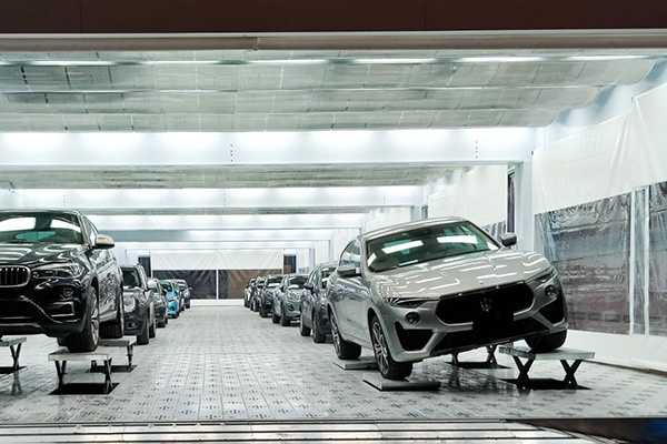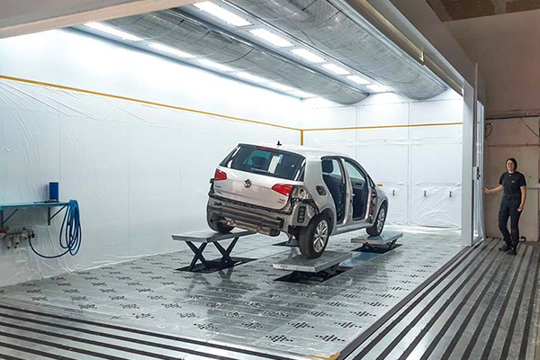Naklonění vozidla usnadňuje cirkulaci vzduchu a zajišťuje efektivní odsávání výparů barvy.
